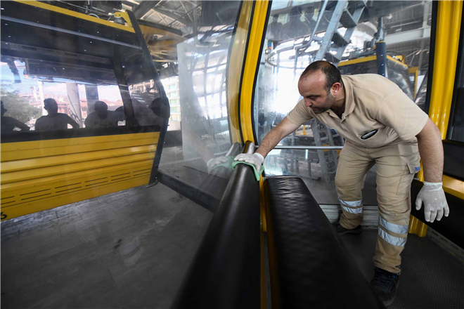 -TOPLU TAŞIMA ARAÇLARINDA VE KAPALI ORTAMLARDA HAŞERE VE SALGIN HASTALIKLARA NEDEN OLAN VİRÜSLERİN YAYILMASINI ÖNLEMEK AMACIYLA EKİPLER, VAGONLAR VE TELEFERİKLERDE BELİRLİ ARALIKLARLA DEZENFEKTE ÇALIŞMASI YAPIYOR