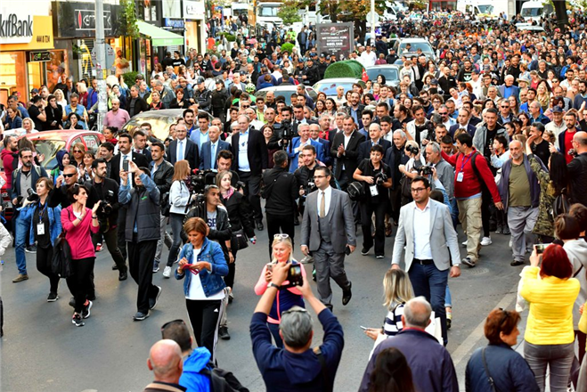 Cadde boyunca vatandaşları selamlayan Başkan Yavaş’a yürüyüşte; TBMM Meclis Başkan Vekili Levent Gök, Milletvekilleri, AB büyükelçileri, Avrupa Birliği Delegasyonu Başkanı Büyükelçi Christian Berger, Yenimahalle Belediye Başkanı Fethi Yaşar, Çankaya Belediye Başkanı Alper Taşdelen, EGO Genel Müdürü Nihat Alkaş, STK temsilcileri ve çok sayıda vatandaş eşlik etti.