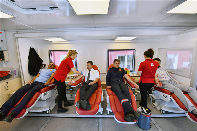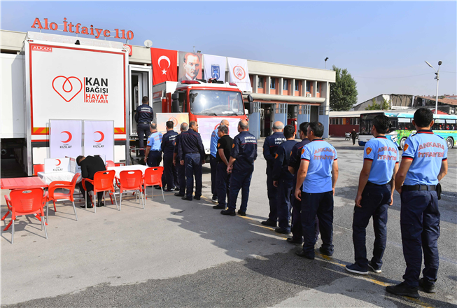 İtfaiye Haftası kapsamında Türk Kızılay’ı ile iş birliği yapan Ankara Büyükşehir Belediyesi İtfaiye Daire Başkanlığı’nın tüm personeli, İskitler Merkezi’nde kampanya için kan bağışında bulundu.