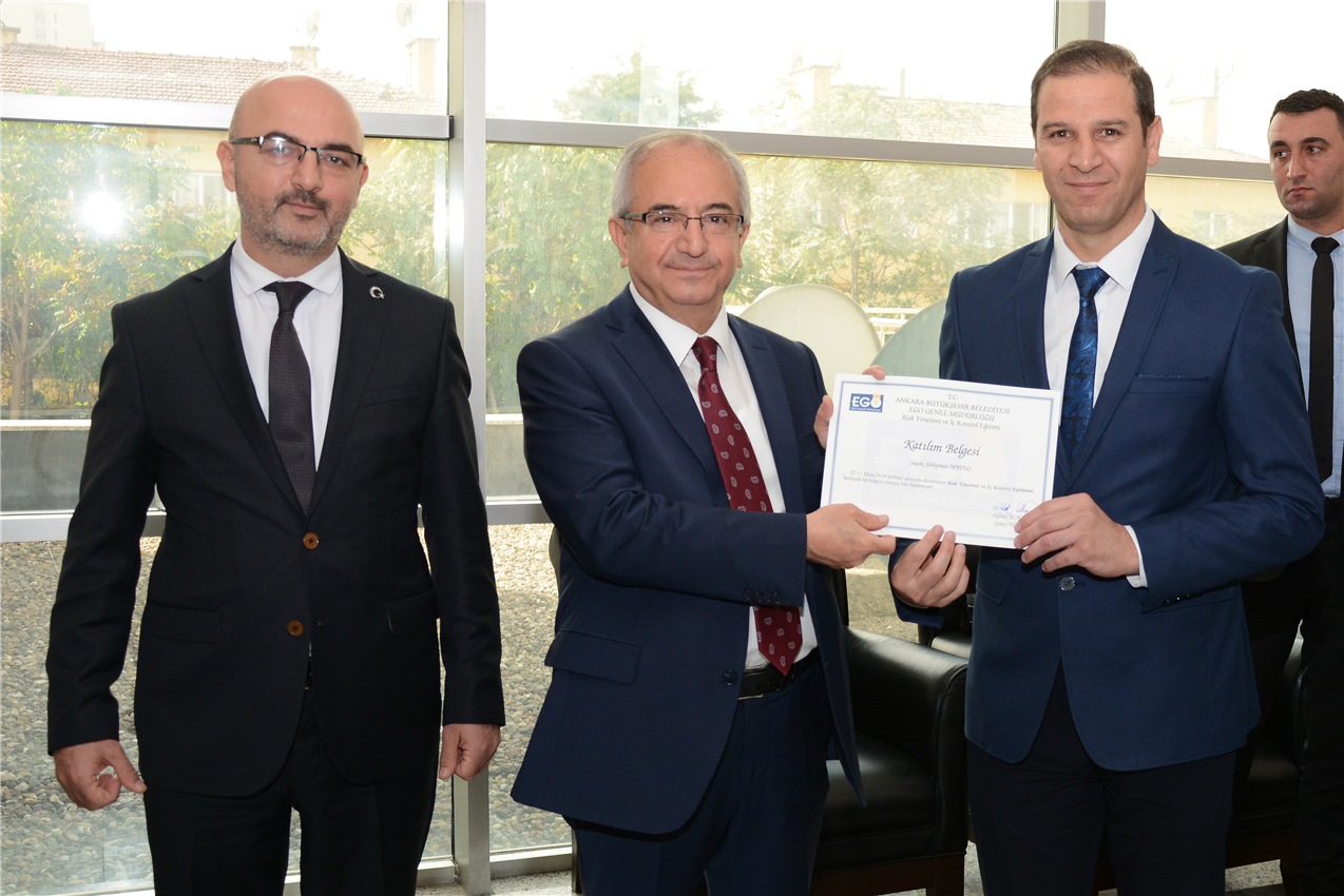 EGO Genel Müdürlüğü ve TBB işbirliği ile düzenlenen “Risk Yönetimi ve İç Kontrol Eğitimi” programının ilk grup katılımcılarına sertifikaları EGO Genel Müdürü Nihat ALKAŞ tarafından verildi. ALKAŞ “Bu eğitim programıyla hedeflenen, kurumsal risk yönetimi sistem ve süreçlerinin Genel Müdürlüğümüz başta olmak üzere, tüm yönetim kademelerine fayda sağlayacak bir yönetsel araca dönüşmesinin sağlanmasıdır.” dedi.