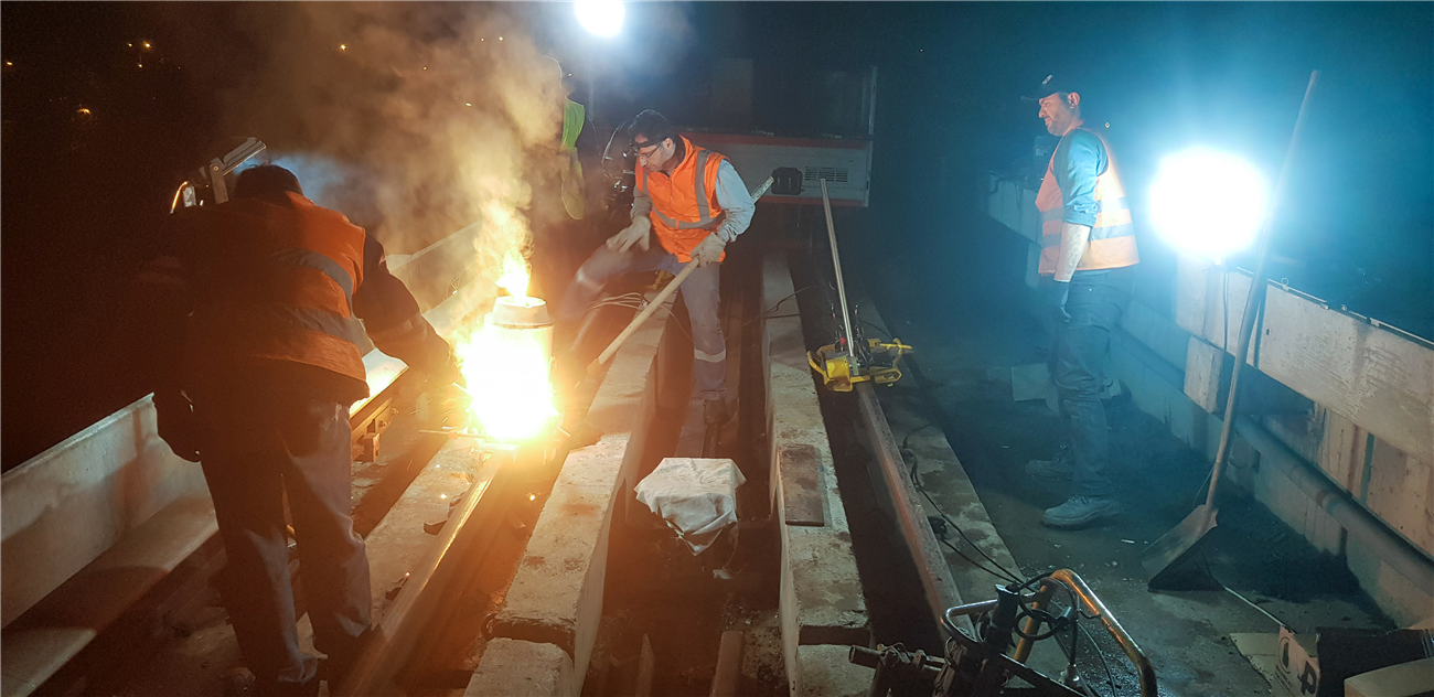 Ankara Metrosu Akköprü-İvedik İstasyonları arasında aşınan 250 metre uzunluğundaki rayların değişim çalışmalarına başlayan Raylı Sistemler Daire Başkanlığı ekipleri, kaynak çalışmalarını seferlerin olmadığı 01.00-05.00 saatleri arasında yapıyor.