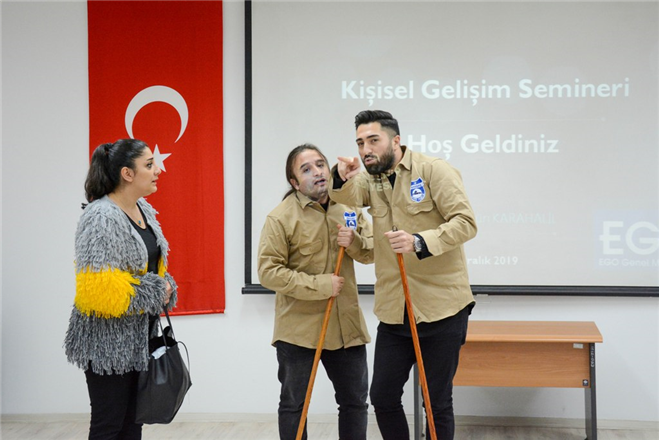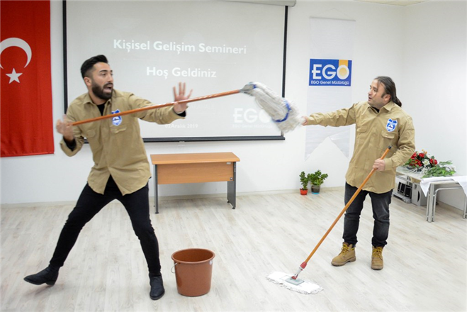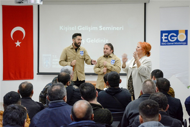 Büyükşehir Belediyesi EGO Genel Müdürlüğü ile Türkiye Belediyeler Birliği iş birliğiyle Metro ve ANKARAY İstasyonlarında görev yapan temizlik personeline ilk kez “Kişisel Gelişim” semineri veriliyor.
