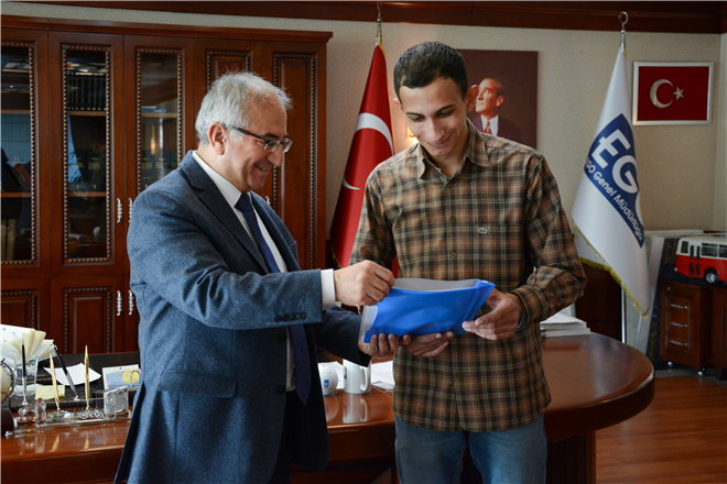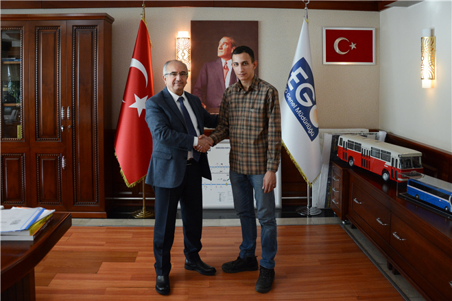 EGO GENEL MÜDÜRÜ NİHAT ALKAŞ, ÜNİVERSİTE ÖĞRENCİSİ EMRE ASLAN’I KURULUŞUMUZA DAVET EDEREK MAKAMINDA AĞIRLADI…