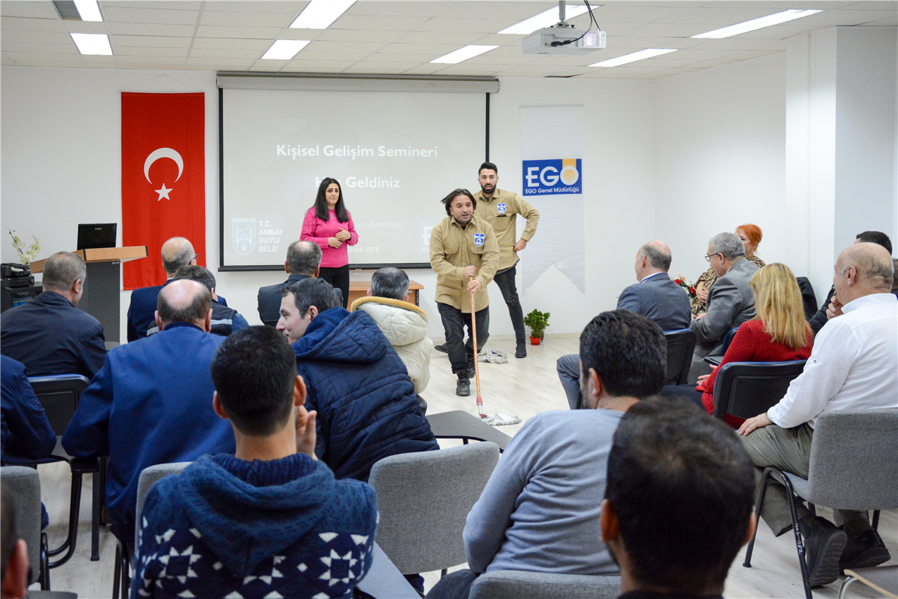 Ankara Büyükşehir Belediyesi EGO Genel Müdürlüğü ile Türkiye Belediyeler Birliği Belediye Akademisi iş birliğiyle Metro ve Ankaray İstasyonlarında görev yapan temizlik personeline verilen “Kişisel Gelişim Semineri” sona erdi.