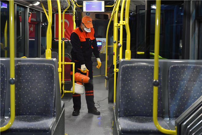 EGO Genel Müdürlüğü bünyesindeki otobüsler iç-dış temizlenerek, ilaçlamaları yapılıyor. Otobüs içlerinin dezenfeksiyonu için insan sağlığına zarar vermeyen Sağlık Bakanlığı ruhsatlı ve Dünya Sağlık Örgütü onaylı Tip-2 adlı ürün kullanılıyor.