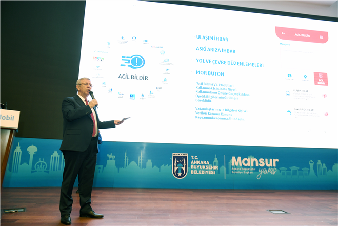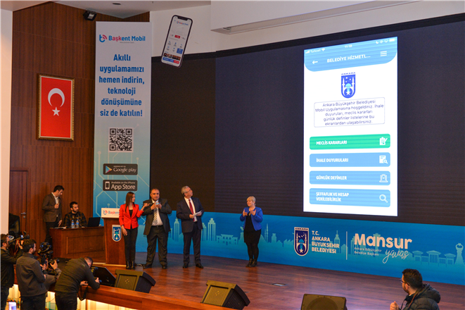 Ankara Büyükşehir Belediye Başkanı Mansur Yavaş, Türkiye’nin ilk mobil Akıllı Belediye uygulaması “Başkent Mobil”i kamuoyuna tanıttı. Yazılımın büyük bir bölümünün Belediyede görevli yazılımcılar tarafından hazırlandığını belirten Başkan Yavaş, Başkent Mobil’in dünyanın sayılı uygulamaları arasına gireceğini söyledi. Acil bildir butonundan Başkent153’e (Yeni Mavi Masa), nöbetçi eczanelerden devam eden çalışmalara, trafik durumundan ASKİ online işlemlere, Kültür Ankara’dan otobüs nerede uygulamalarıyla birçok belediye hizmeti bundan sonra Başkentlilerin hayatını kolaylaştıracak.