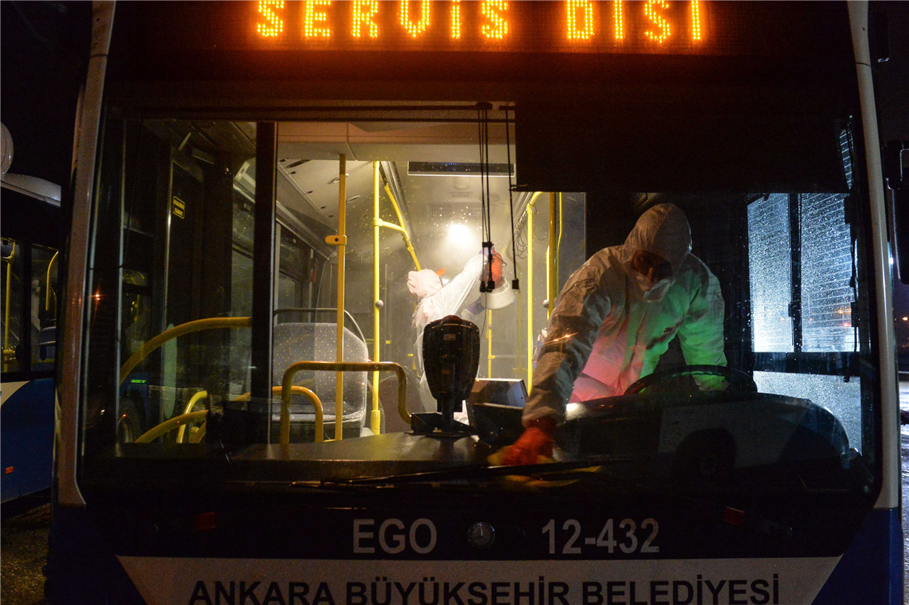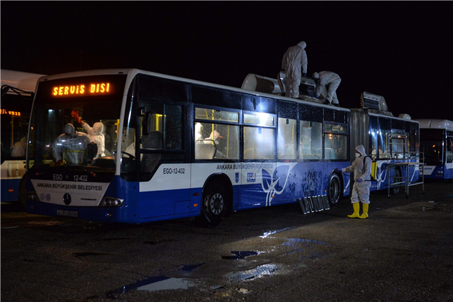 Konaklama yapılan yurtlarda BELPLAS ekipleri tarafından dezenfeksiyon çalışması yapılırken, yolcuların taşındığı 37 EGO otobüsü servis sonrası 3. Bölge Otobüs İşletme Müdürlüğünde uluslararası standartlarda dezenfeksiyon işlemine tabi tutuldu. Havalandırma sistemine kadar sterilize edilerek, filtreleri yenilenen otobüslerin iç ve dış temizliği de yapıldı.