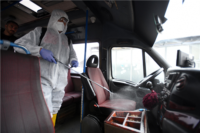 DOLMUŞLAR VE DURAKLARDA DA DEZENFEKSİYON