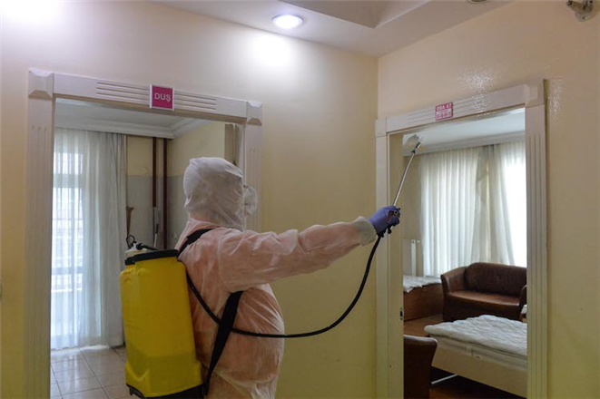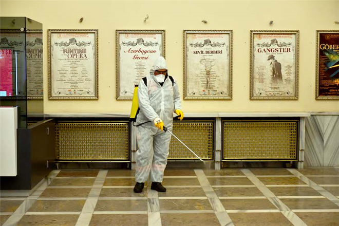 Salgın hastalıklarla etkin mücadele amacıyla sivil toplum kuruluşlarının binalarında dezenfeksiyon çalışmalarına devam eden temizlik ekipleri; birçok bakanlık, askeri binalar, yargı kurumları ile Opera binasında da geniş çaplı sterilizasyon işlemi gerçekleştiriyor.