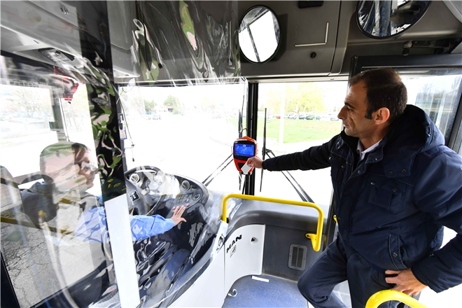 EGO’ya ait toplam bin 470 otobüste sürücü bölümüne yerleştirilen şeffaf malzeme sayesinde yolcu ile şoför arasındaki temasın mümkün olabildiğince en aza indirilmesi hedefleniyor.