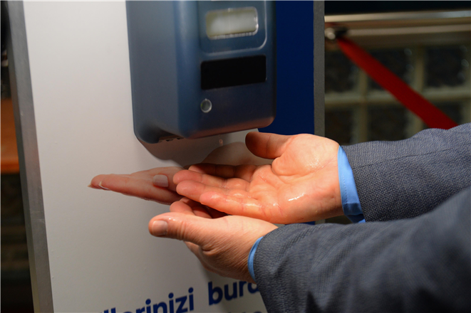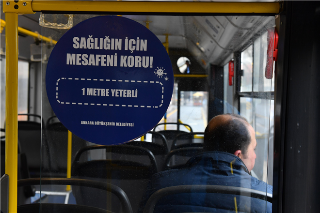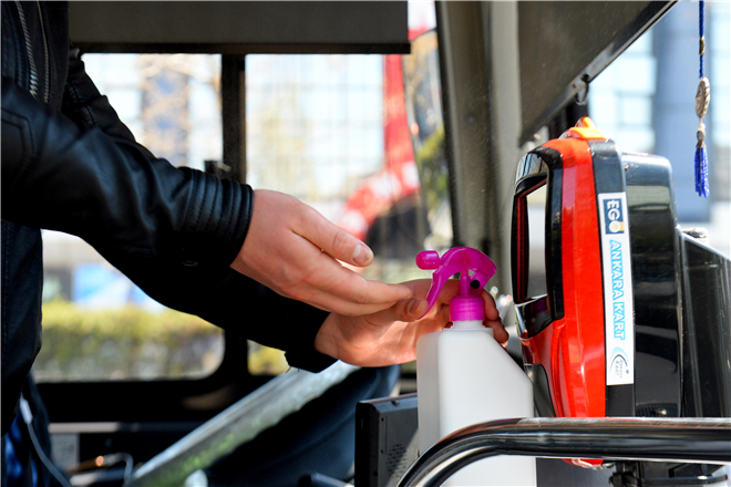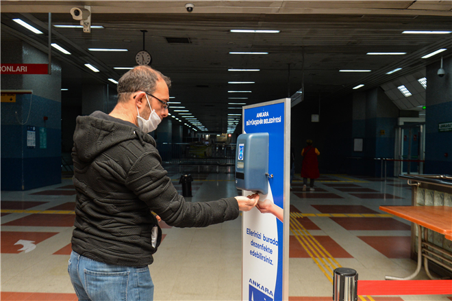 Başkent’te hizmet veren bin 470 EGO otobüsü başta olmak üzere 200 Özel Halk Otobüsü (ÖHO) ve 160 Özel Toplu Taşıma Aracına (ÖTA) dezenfektan ürün dağıtan EGO Genel Müdürlüğü, daha önce Metro ve ANKARAY istasyonlarına vatandaşların kullanması için el dezenfektanları yerleştirerek, maske dağıtımına da başlamıştı.