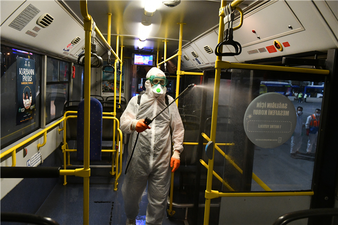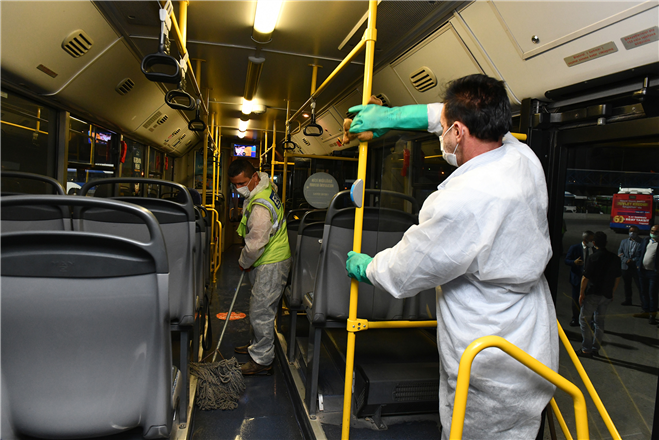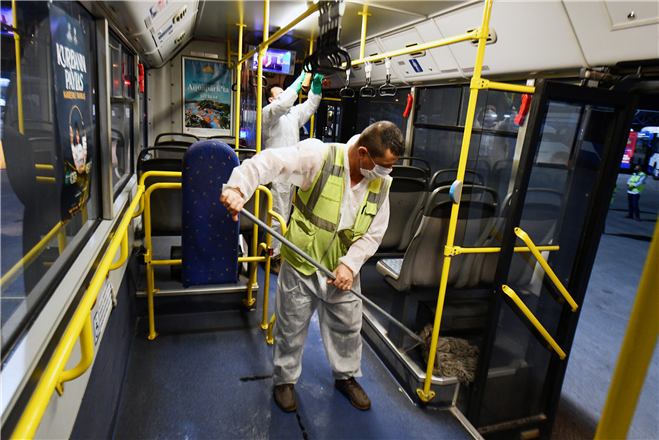 “Covid-19 salgını ülkemizde görüldüğü ilk günden itibaren dezenfeksiyon ve temizlik çalışmalarına hiç ara vermeden devam ediyoruz. Servise verdiğimiz günlük ortalama bin 320 otobüsümüz her gece depolandıkları 5 bölgede düzenli olarak dezenfekte ediliyor. Vatandaşlarımıza temiz ve hijyenik bir ortamda toplu taşıma hizmeti sunabilmek için kendi temizlik ve sağlık ekiplerimizle yoğun bir şekilde çalışıyoruz.”