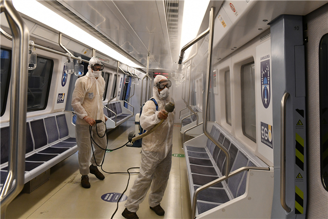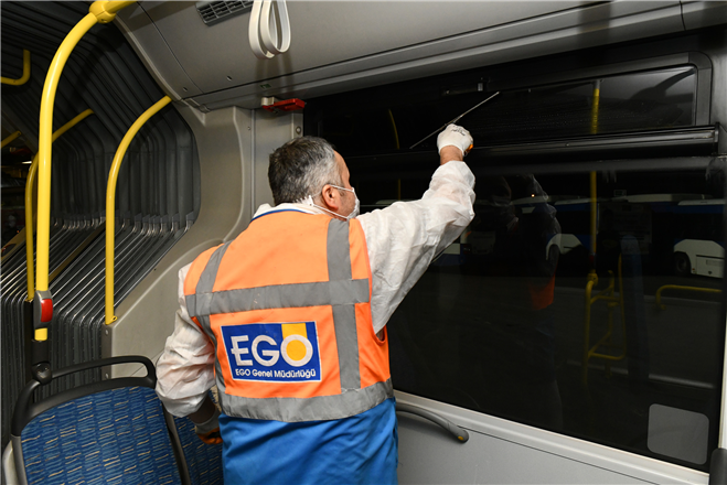EGO Genel Müdürlüğü tarafından servise çıkartılan günlük yaklaşık bin 320 otobüs başta olmak üzere Metro ve ANKARAY’da bulunan vagonlar her gün iç-dış temizlenerek, dezenfekte ediliyor.