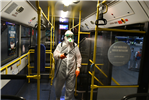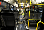 Büyükşehir Belediyesine ait toplu taşıma araçlarında detaylı temizlik çalışmalarının yanı sıra özel dezenfektanlarla virüslere karşı dezenfeksiyon işlemi de yapılıyor. Yolcuların ellerini dezenfekte edebilmeleri için konulan el dezenfektan üniteleri de günlük olarak doldurularak otobüsler sefere hazır hale getiriliyor.