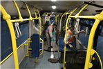 Dezenfeksiyon çalışmaları kapsamında Başkentlilerin yolculuk yaptığı toplu taşıma araçlarının tüm iç yüzeyleri, tavan, yolcu koltuklarının arka ve alt kısımları, camlar, reklam panoları, yolcu tutamak ve tutamak boruları, kapı üstleri, şoför mahalli, torpido, cam kenarları, yan ve tavan yüzeyleri, havalandırma kapakları, araç içerisindeki tüm metal yüzeyler hijyenik temizlik malzemeleriyle temizleniyor.