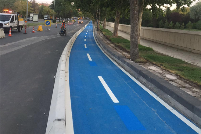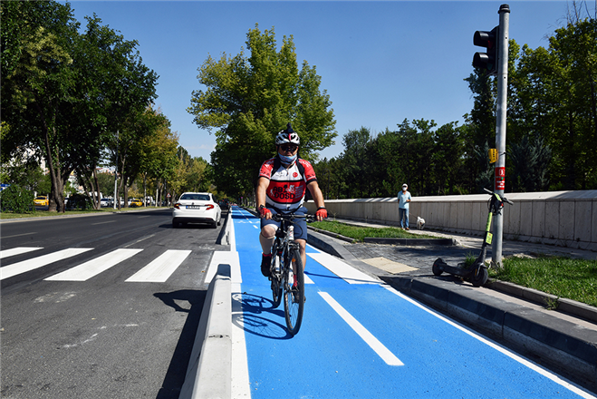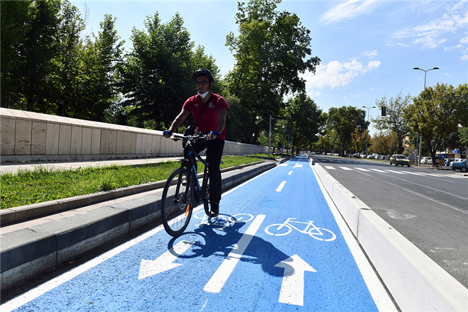 İnsan odaklı çalışmalara ağırlık veren Büyükşehir Belediye Başkanı Mansur Yavaş 53,6 kilometrelik bisiklet yolu projesinin ilk etabının tamamlanması için talimat verdi. EGO Genel Müdürlüğü tarafından yürütülen proje kapsamında Fen İşleri Daire Başkanlığı ekipleri Milli Kütüphane-Anıtkabir arasındaki 1. Etap güzergahının 900 metrelik kısmını tamamladı.