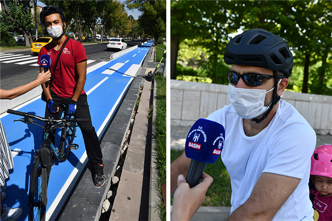 -Menekşe Dağçı: “Projeyi çok beğendim. Her yerde olsun istiyorum. Ben hep bisiklet kullanıyorum. Çünkü sıkışıyoruz, kaldırımlarda yayalar var yollarda araçlar var. Bisikletlilere yol kalmıyordu. Ankara Büyükşehir Belediyesi’ne teşekkür ediyorum.”