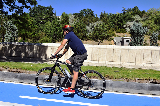 53,6 kilometrelik bisiklet yolu projesinin ilk etabının bin 400 metrelik kısmı kısa sürede tamamlandı. EGO Genel Müdürlüğü tarafından yürütülen proje kapsamında Fen İşleri Daire Başkanlığı ekipleri Milli Kütüphane-Anıtkabir güzergahında yer alan 1. etabın Anıtpark-Beşevler kavşağı arasındaki bölümünü hizmete açtı.