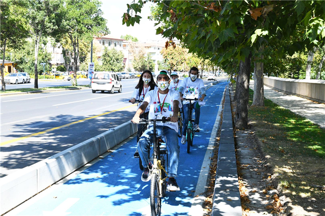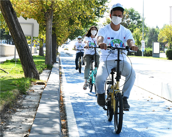 “Avrupa Hareketlilik Haftası” kapsamında Türkiye Belediyeler Birliği'nin davetlisi olarak Başkent'e gelen yabancı üniversite öğrencileri, Anıtpark-Beşevler etabındaki Bisiklet Yolu’nda pedal çevirdi.