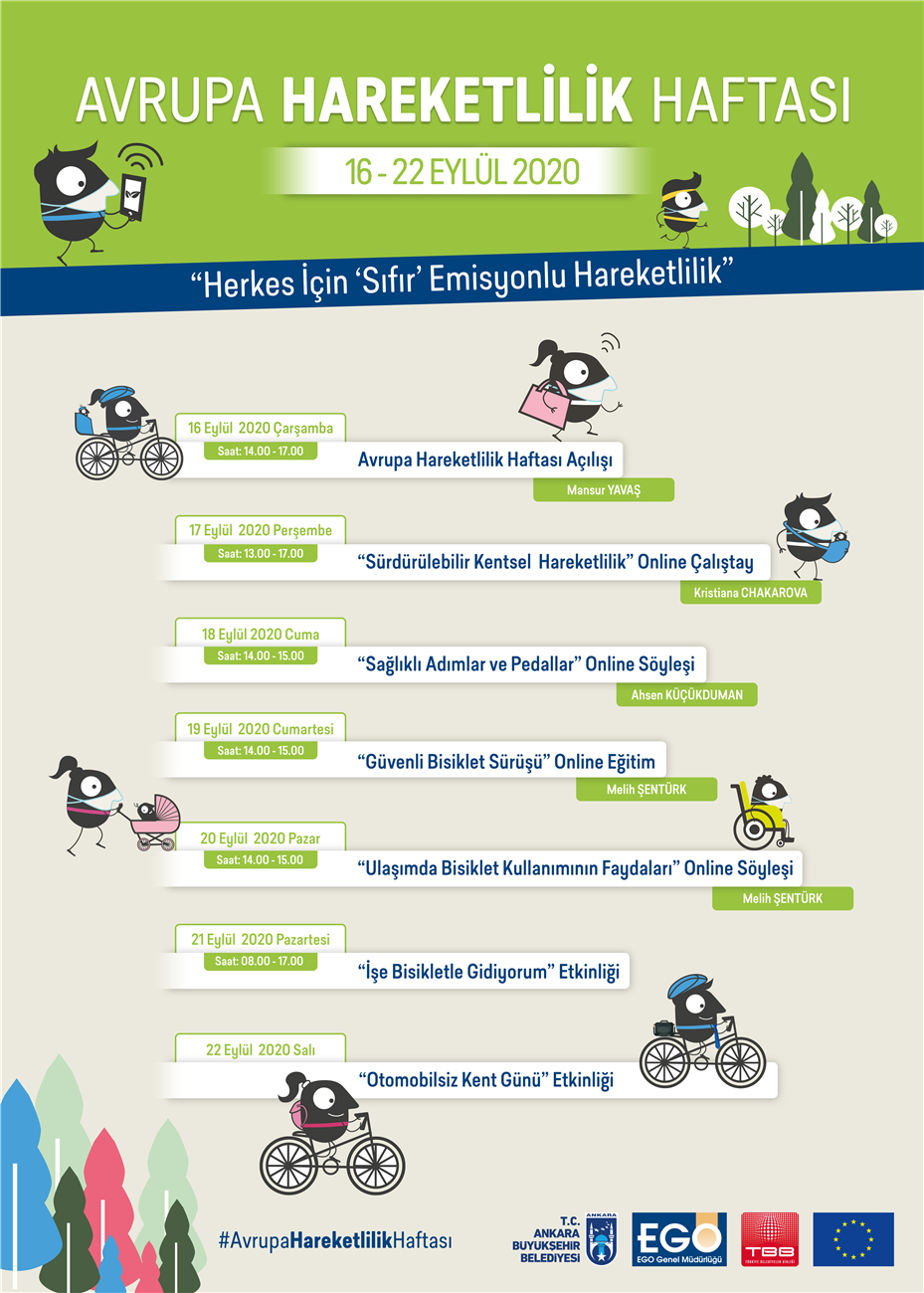 Ankara Büyükşehir Belediyesi, kentleri ve belediyeleri sürdürülebilir ulaşım tedbirleri almaya ve desteklemeye teşvik eden ve her yıl 16-22 Eylül tarihleri arasında gerçekleştirilen “Avrupa Hareketlilik Haftası” için hazırlıklarını tamamladı. Pandemi nedeniyle etkinliklerin online olarak yapılacağı haftanın açılış toplantısı Ankara Büyükşehir Belediye Başkanı Mansur Yavaş tarafından 16 Eylül Çarşamba günü yapılacak.