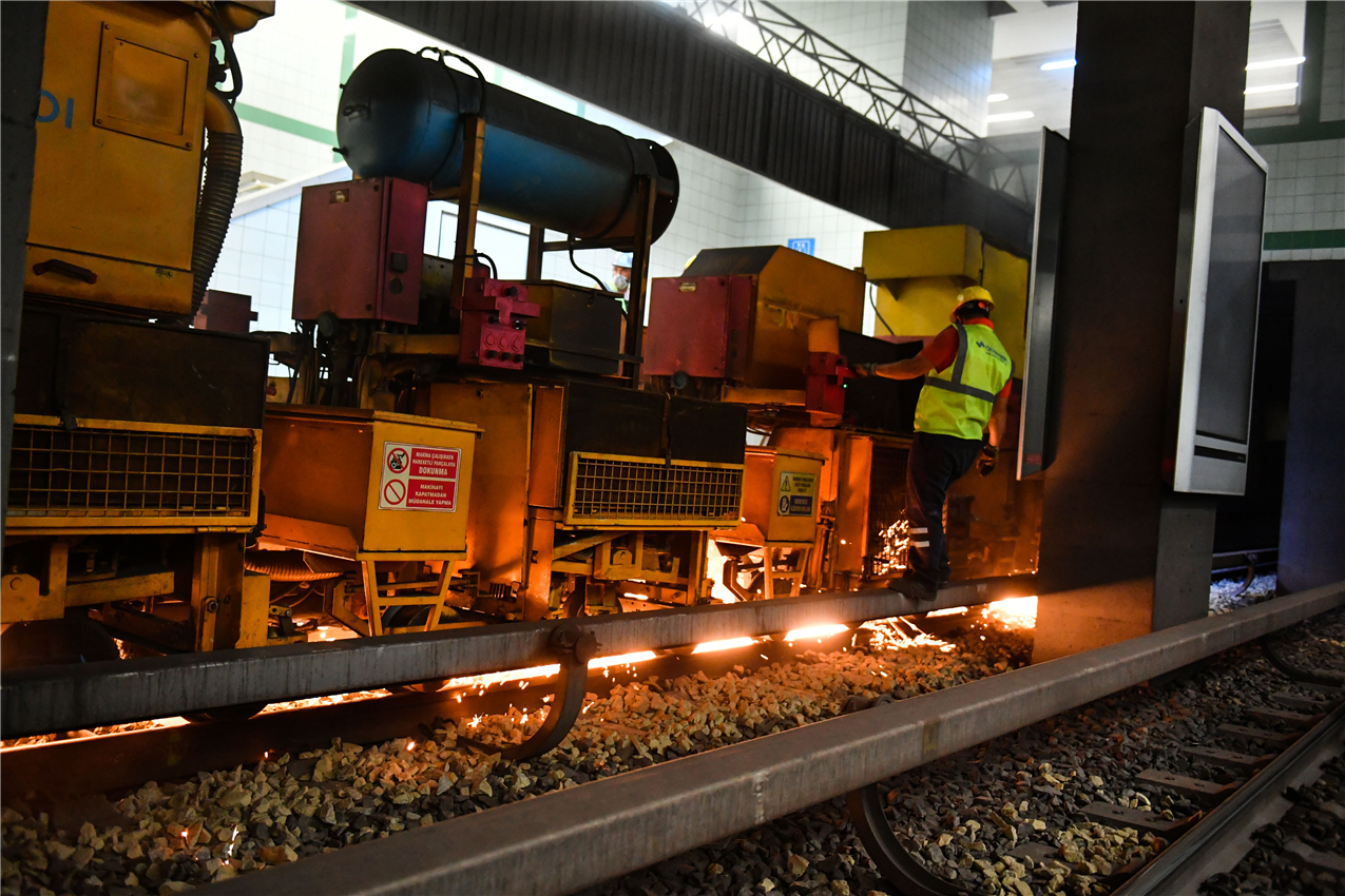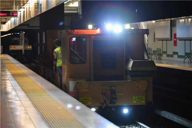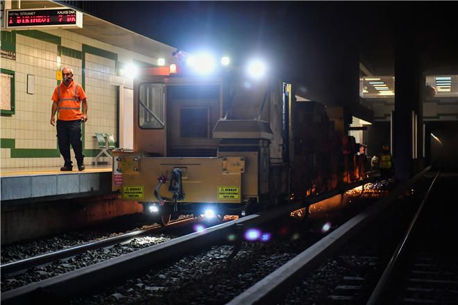 Çalışmalar, vatandaşların mağdur olmaması için trenlerin son seferlerini tamamlamalarının ardından 02:00-06:00 saatleri arasında gerçekleştiriliyor.
