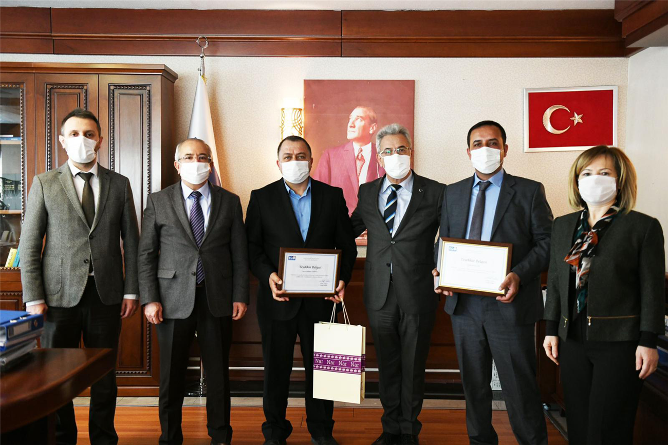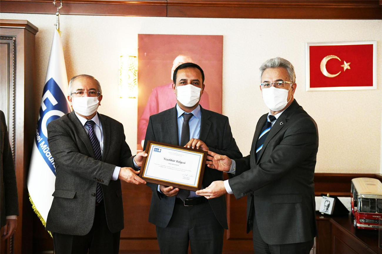 EGO Genel Müdürü Nihat Alkaş, görevleri sırasında yapmış oldukları örnek davranışlar nedeniyle EGO bünyesinde çalışan iki otobüs şoförünü makamında ağırlayarak, “Teşekkür Belgesi” takdim etti.