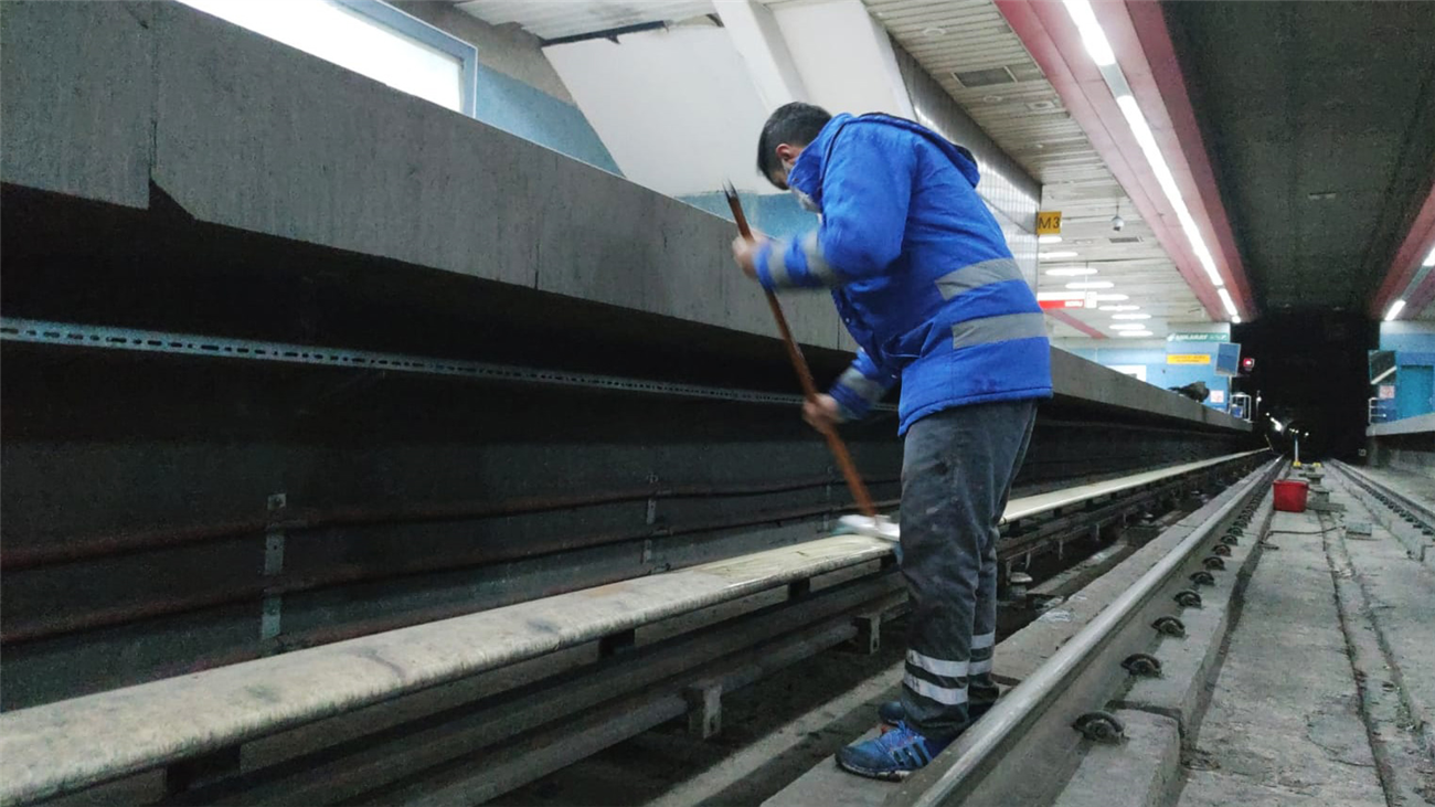 7 Mart 2021 Pazar günü Hat Bakım Teknisyenleri gözetiminde temizlik birimi tarafından gerçekleştirilen çalışma öncesinde, Kuruluşumuz Metro İşletme Müdürlüğüyle koordinasyon sağlanarak, gerekli İş Sağlığı ve Güvenliği önlemleri alındı.