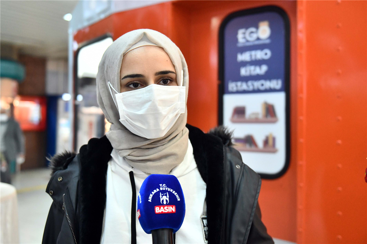 -Yasemin Avera: “Suriyeliyim ve Ankara Üniversitesi’nde okuyorum. Kızılay gibi şehir merkezinde kitapları ulaşılabilir kılmak beni çok mutlu etti. Metro’da kütüphane bulmak çok güzel. Okumayı sevenler için çok faydalı olacak ve de okuma alışkanlığı kazandıracak.”