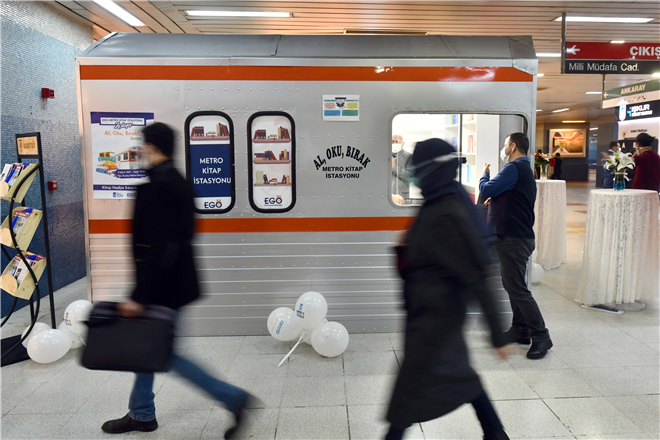 EGO Genel Müdürlüğü, kitap okuma alışkanlığını artırmak amacıyla mini kütüphane modeli “EGO Metro Kitap İstasyonu”nu Başkentlilerle buluşturdu. Vatandaşlar Kızılay Metro İstasyonu içerisinde tren maketinden yapılan kitap istasyonundan T.C. kimlik ve telefon numarasıyla kayıt yaptırarak ücretsiz kitap alabilecek.