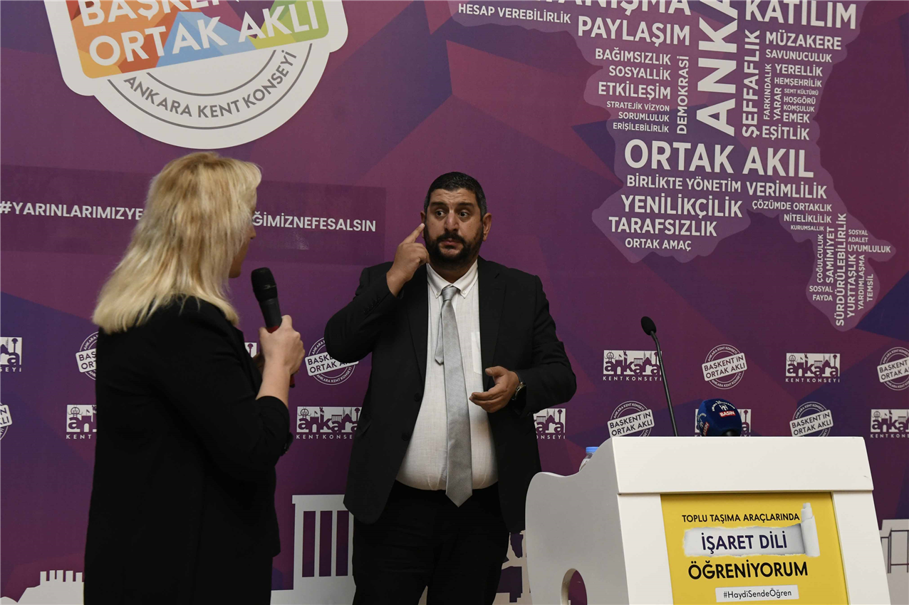 Ankara Kent Konseyi (AKK) ve EGO Genel Müdürlüğü’nün işitme engelli vatandaşların iletişim kurarken yaşadıkları soruna dikkat çekmek ve bu sorunları en aza indirmek hazırladığı “İşaret Dili Öğreniyorum Projesi” tanıtım toplantısı düzenlendi.