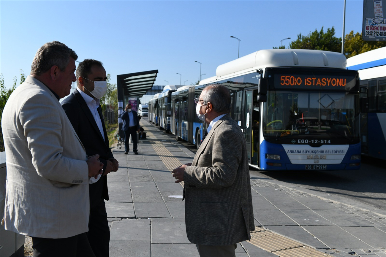 İnceleme sırasında öğrencilerle de konuşan Alkaş, 27 Eylül 2021 Pazartesi günü itibarıyla 550 Beytepe Metro İstasyonu-Beytepe Kampüsü hat numaralı güzergâhta 23 adet araçla, 210 adet servis verildiğini; Beytepe Metro İstasyonu’ndan ve Beytepe Kampüsü’nden karşılıklı olarak yaklaşık 3-4 dakikada bir hareket edecek şekilde servis planlaması yapıldığını ifade etti.