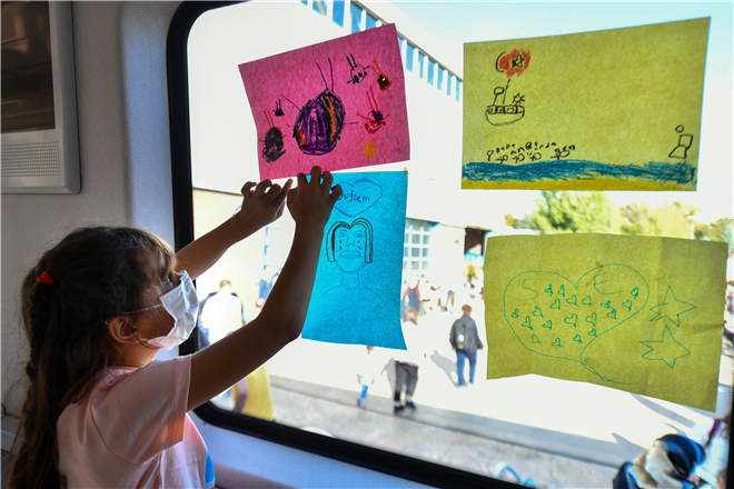 Kız çocuklarının günün anlam ve önemini anlatan resimleri, EGO Genel Müdürlüğü tarafından bir hafta boyunca hatta çalışan metro vagon camlarında sergilenecek.