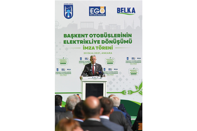 “Dünya ulaşım sektörü son yıllarda hızlı bir gelişim ve dönüşüm geçirmektedir. Dizel ve benzinli araçların yoğunlukta olduğu bu sektörde, karbon salınımı ve emisyon oranlarındaki artışa bağlı olarak yaşanan iklim değişikliği sonucunda artan çevresel duyarlılıkların da etkisiyle tüm dünyada doğalgazlı ve elektrikli araç kullanımı yaygınlaşmaktadır. EGO Genel Müdürlüğü olarak, dünyadaki bu çevreci yaklaşıma paralel olarak toplu taşıma hizmetlerinde kullanılmak üzere, düşük emisyon değerleri ile doğayı koruyan Euro 6 motor teknolojisine sahip 51 adet 8.3 metrelik otobüsün filomuza kazandırılmasından sonra, Avrupa İmar ve Kalkınma Bankası kredisiyle temin ettiğimiz %90‘ı doğalgazlı olan 301 otobüsümüzü de önümüzdeki aydan itibaren peyderpey filomuza dahil edeceğiz. Belediyemiz iştiraki olan BELKA A.Ş. tarafından 2006 model dizel otobüslerden 22 adedi, %100 elektrikli otobüse dönüştürülerek filomuza dahil edilecek. İlerleyen süreçte alımı gerçekleştirilecek, yeni elektrikli otobüslerle filomuzun daha da çevreci hale gelmesi hedeflenmektedir.”