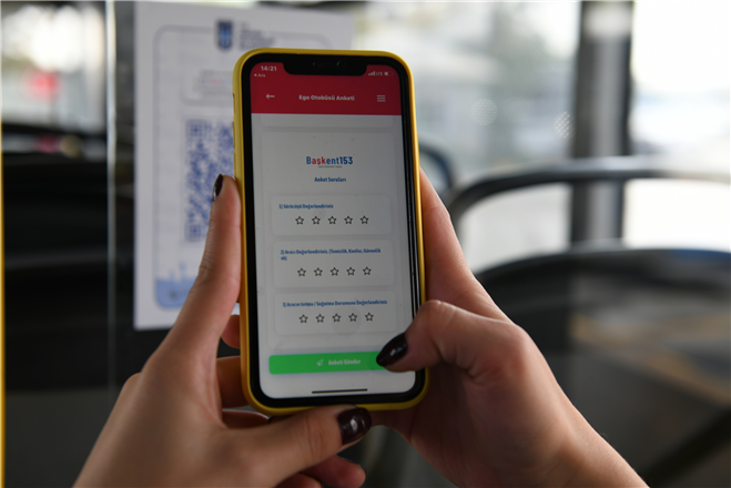“Başkent Mobil uygulamasında karekod içeren ve araç plakasına tanımlı anket çalışmasına Başkanımız Sayın Mansur Yavaş’ın yönlendirmesi ile başladık. Bu uygulamaya Başkent Mobil üzerinden karekod anket butonunu tıklayarak ulaşabiliyoruz. Bu uygulamada sürücülerimizin yanı sıra aracın temizlik, konfor, güvenlik, aracın ısıtma ve soğutmasına ilişkin konu başlıkları bulunuyor. Yolcularımız bu ankete katılarak görüşlerini, talep ve şikayetlerini bildirebilirler. Bu anket ile vatandaşlarımızdan gelen veriler doğrultusunda en kısa sürede daha iyi, daha verimli, daha rahat, daha sağlıklı ve daha güvenli bir ortamda seyahat imkanı amaçlanmaktadır.”