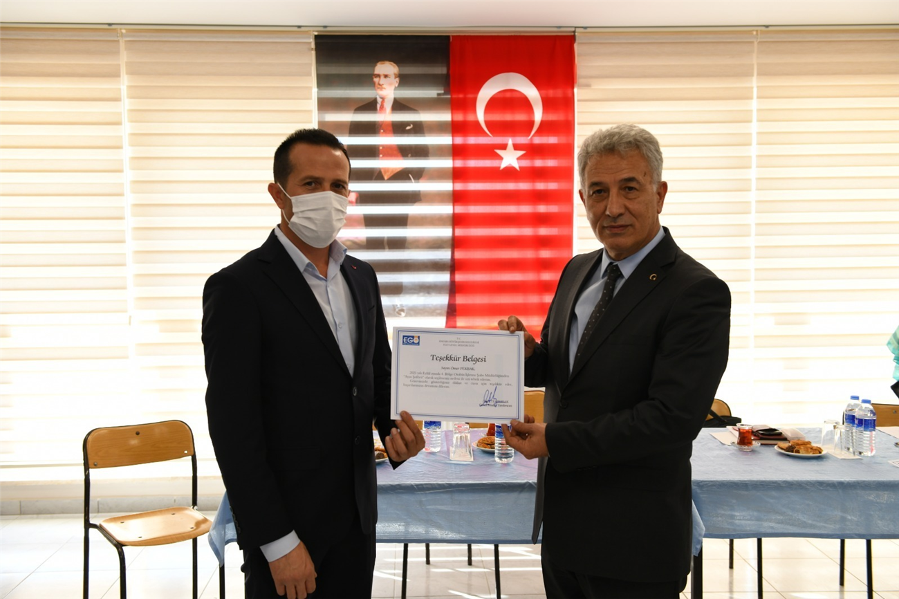 Tekbudak, konuşmasının ardından ayın şoförlerine teşekkür belgelerini takdim etti.