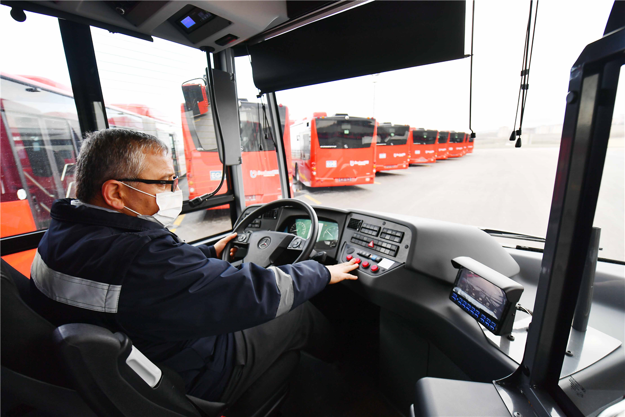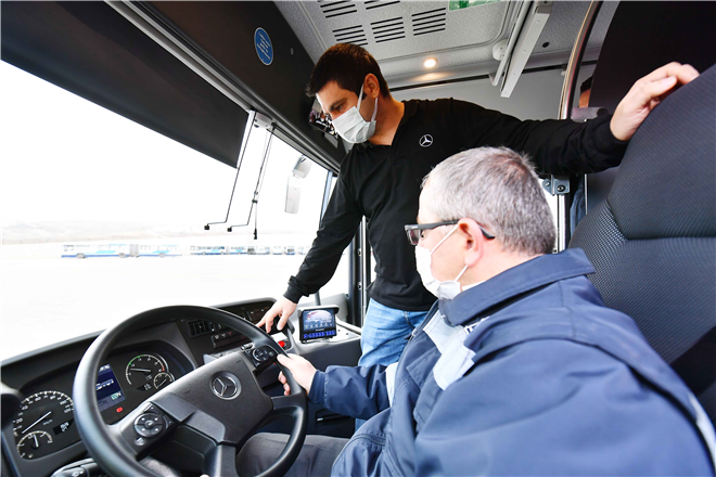 “Otobüslerimizi hizmete sokmak için 2 bin 500’den fazla şoförümüze eğitim vermeye başladık. Eğitimleri Mercedes’in kendi eğitmenleri veriyor. Dört kişilik bir kadroyla eğitimlerimiz veriliyor. 2. ve 3. Bölge’de 15’er kişilik gruplarla eğitimlerimiz veriliyor. Gruplarımızdaki şoför sayısını minimum seviyede tutarak daha verimli eğitim alınmasını hedefliyoruz. Önce teknik olarak bütün bilgilendirmeler yapılıyor ardından pratik eğitime geçiyoruz.”