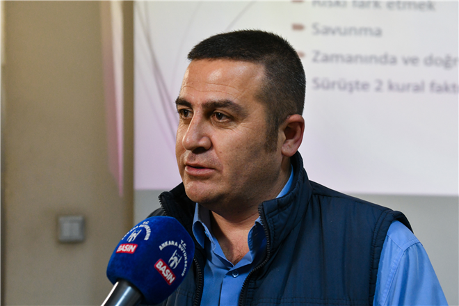 Uzman eğitmen Sinan Çetin tarafından sürücülere can ve mal güvenliğinin korunması hakkında önemli bilgiler verilirken, Başkent’te toplu ulaşımda can güvenliğini sağlamak kadar trafik kurallarına uyulmasının da önemine dikkat çeken EGO Genel Müdür Yardımcısı Zafer Tekbudak, şöyle konuştu: