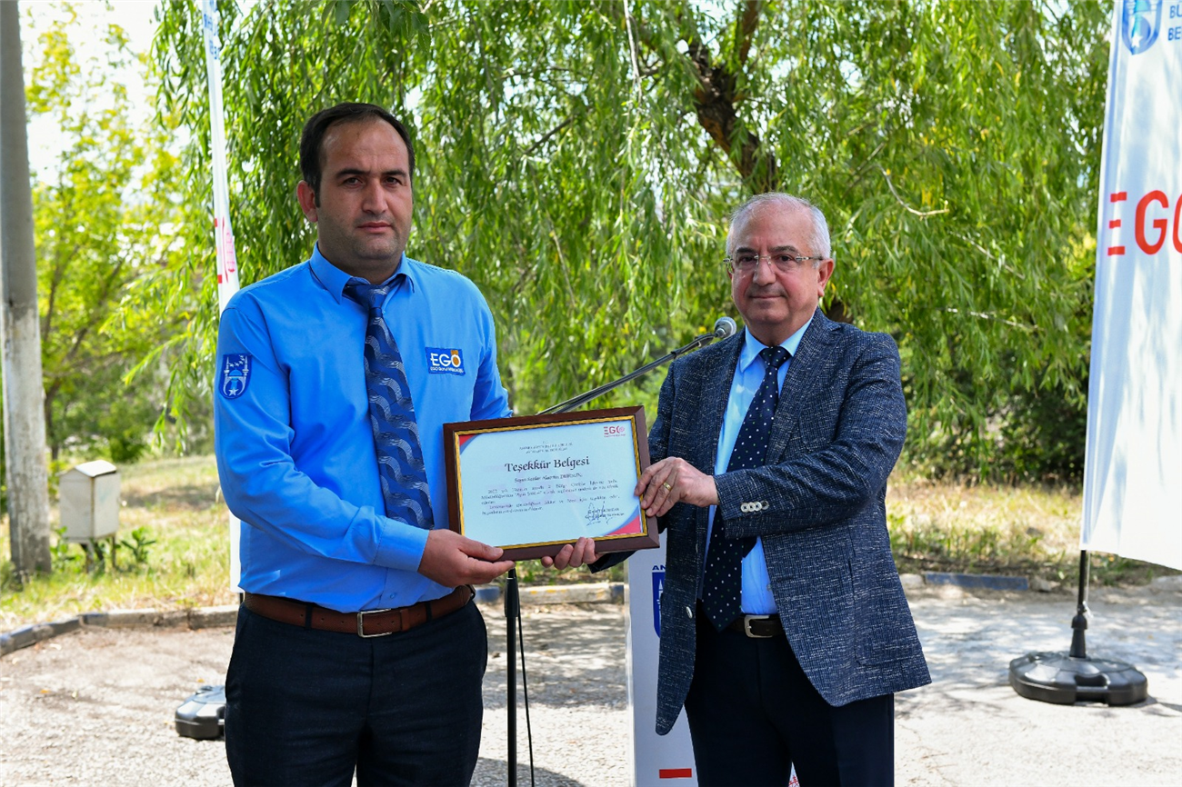 Programda Haziran ayı için “Ayın Şoförü” seçilen personele de belgelerini takdim eden EGO Genel Müdürü Nihat Alkaş, 2021 yılında başlatılan uygulamada bugüne kadar 90 personele ödül verildiğini açıkladı.