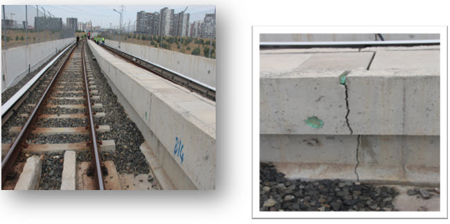 Yürüme yolunun oturma yaptığı ve çatladığı bölgede; üzerinden devamlı tren geçen raylar da aynı gerilime maruz kalmaktadır.