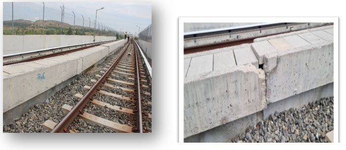 Viyadük yakınındaki yaklaşım plağı üzerine çökmeden dolayı iki defa kalıp yapılarak beton dökülmüş ve ray altına dolgu yapılmıştır. Ancak yine de ray geometrisinde bozulma meydana gelmiştir. Bozulma fotoğrafta da görülmektedir.