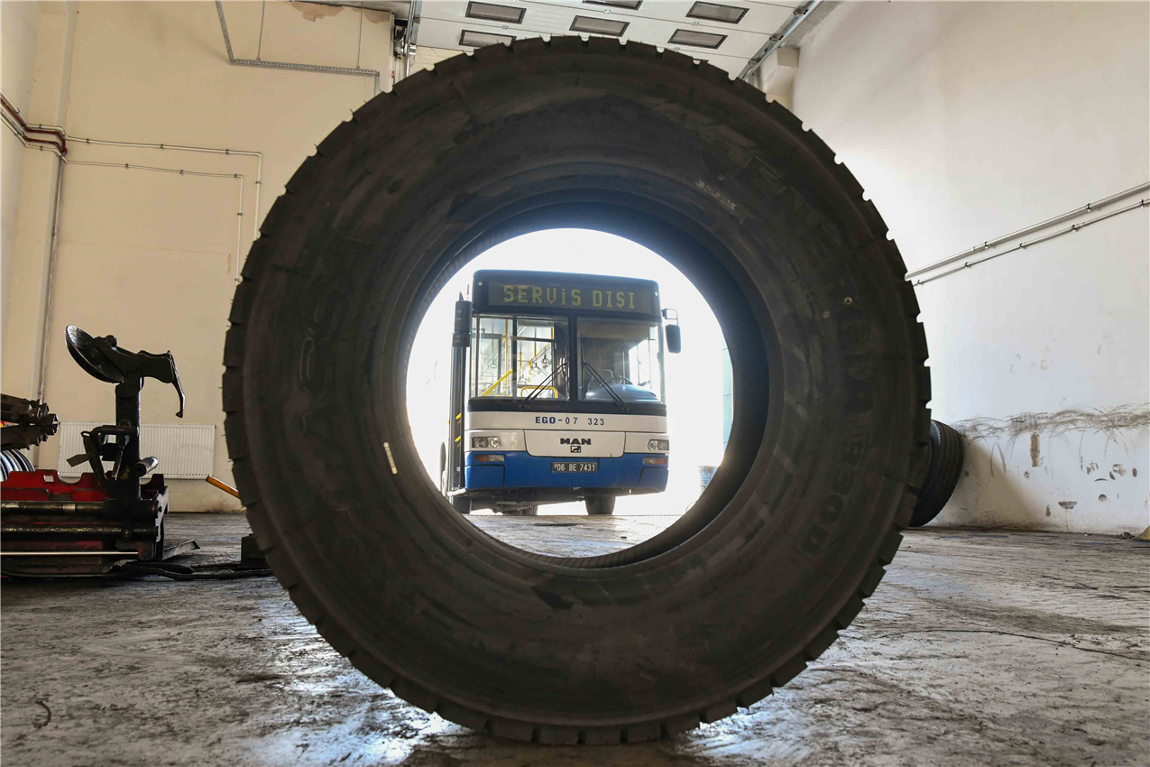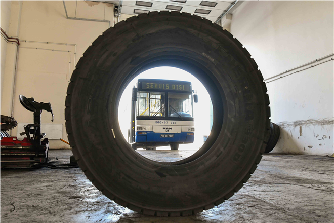Zorunlu kış lastiği uygulaması başlamadan hazırlıklarını tamamlayan EGO Genel Müdürlüğü ekipleri, tüm otobüslerindeki yazlık lastikleri vakumlu kış lastikleriyle değiştirdi.
