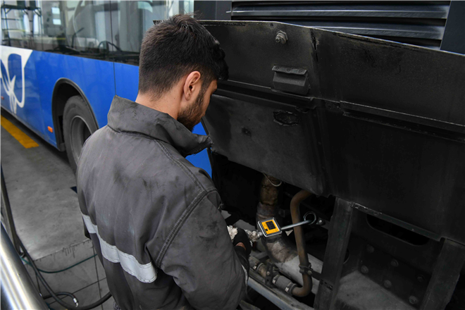 Araç Bakım Onarım Daire Başkanlığı’nın, bölge müdürlüklerindeki atölyelerinde lastik değiştirme işlemlerinin yanı sıra otobüslerin tüm kışlık bakımları da yapıldı. Bu kapsamda otobüslerin antifriz, klima ve kalorifer bakımları büyük titizlikle gerçekleştirildi.