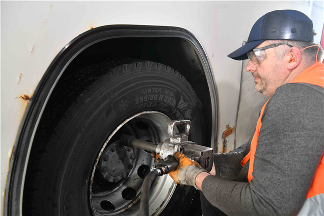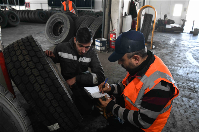 Zorunlu kış lastiği uygulaması öncesi lastikleri değiştirilen otobüslerin, tüm kışlık bakımları da yapıldı.