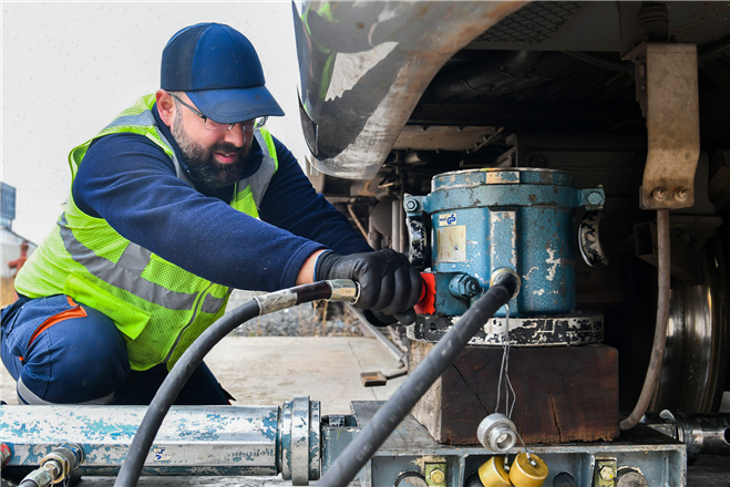 Tatbikatta, tonlarca ağırlıktaki vagona kumanda masası ve ekipmanlarla müdahale eden uzman bir ekip profesyonel bir şekilde rerailing işlemi (güvenli yeniden raylama) uyguladı.