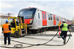 Ankara Büyükşehir Belediyesi EGO Genel Müdürlüğü, Metro İşletmesi Macunköy İşletme ve Bakım Merkezi’nde senaryo gereği raydan çıkan tren için kurtarma tatbikatı gerçekleştirdi.