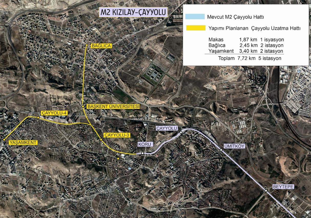 7,7 kilometre uzunluğunda Koru-Yaşamkent ve Koru-Bağlıca Raylı Sistem Uzatma Hatları, 5 kilometre uzunluğunda Şehitler-Forum Raylı Sistem Uzatma Hattı ile 13 kilometre uzunluğunda Kızılay-Dikmen Raylı Sistem Hattı’nda ise proje ihaleleri yapıldı.