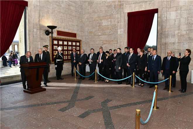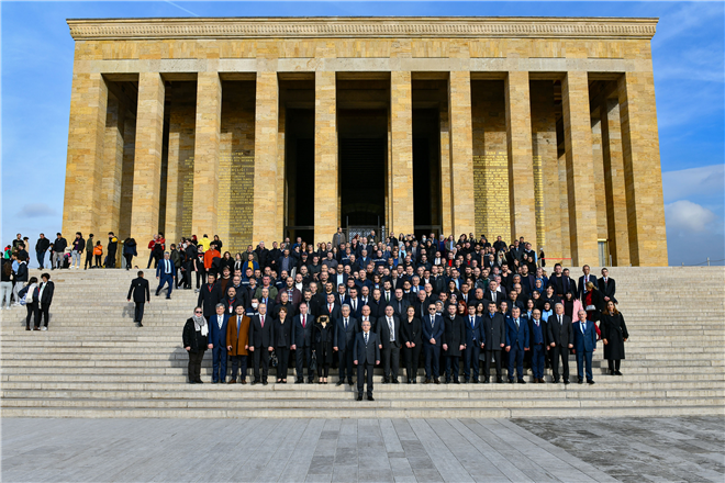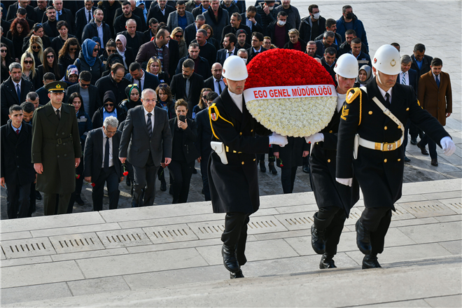 EGO Genel Müdürü Nihat Alkaş, Genel Müdür Yardımcıları, Daire Başkanları ile çalışanlar, EGO’nun “80. Kuruluş Yıl Dönümü”nde Anıtkabir’i ziyaret etti.