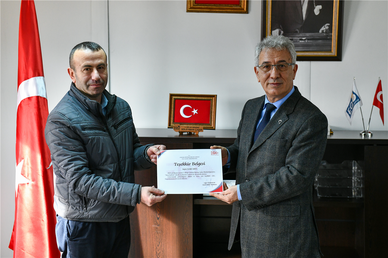 Zafer Tekbudak, “Ayın Şoförü” olarak seçilen sürücülerin, hangi kriterleri yerine getirmiş olduklarına ilişkin bilgileri paylaşmasının ardından, sürücü personeli kutlayarak teşekkür belgelerini takdim etti.