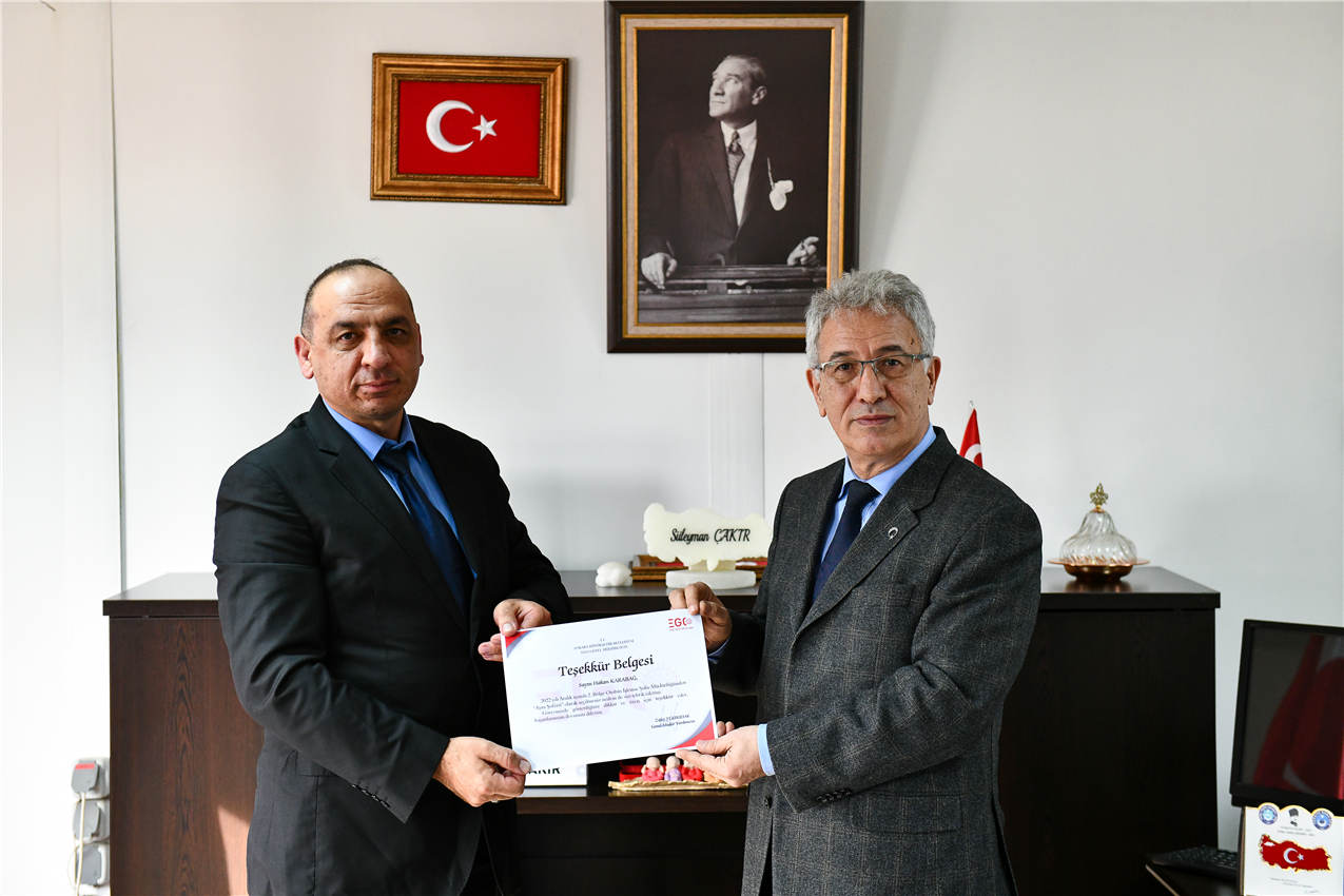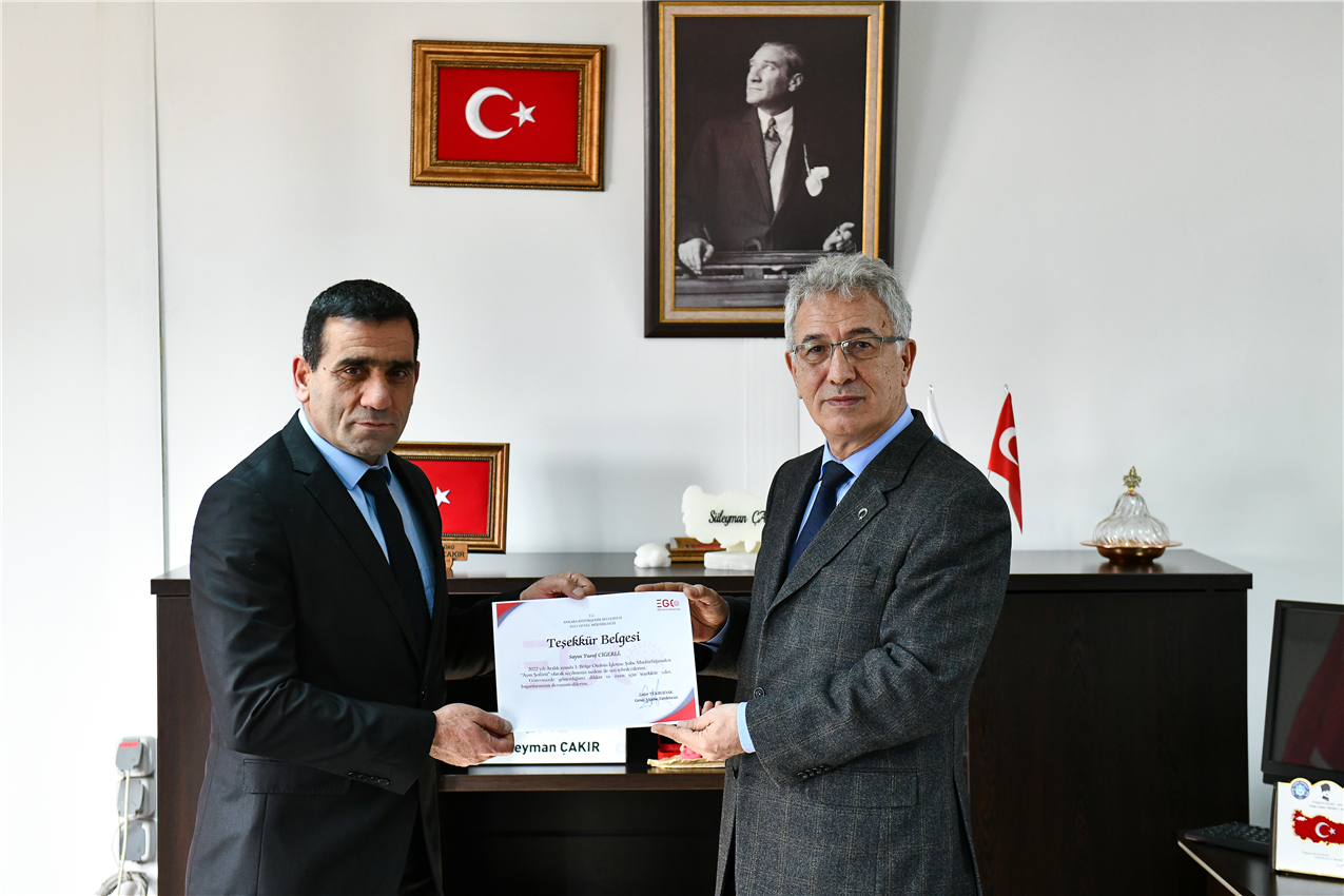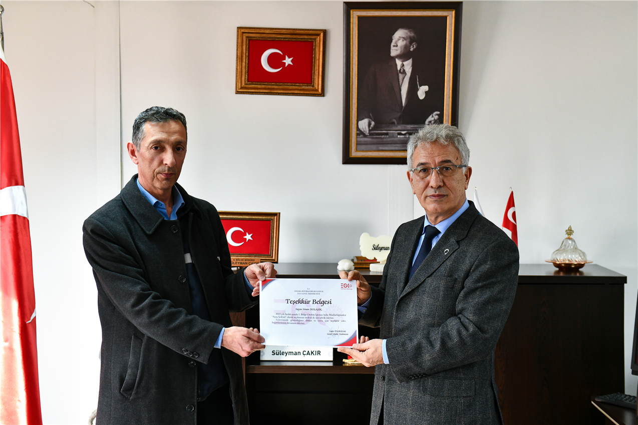 EGO Genel Müdür Yardımcısı Zafer Tekbudak, Hizmet İyileştirme ve Kurumsal Gelişim Dairesi Başkanı Ayten Gök ve Otobüs İşletme Dairesi Başkanı Yahya Şanlıer teşekkür belgelerini takdim etmek üzere “Ayın Şoförleri” ile 5. Bölge Otobüs İşletme Müdürlüğü’nde bir araya geldi.