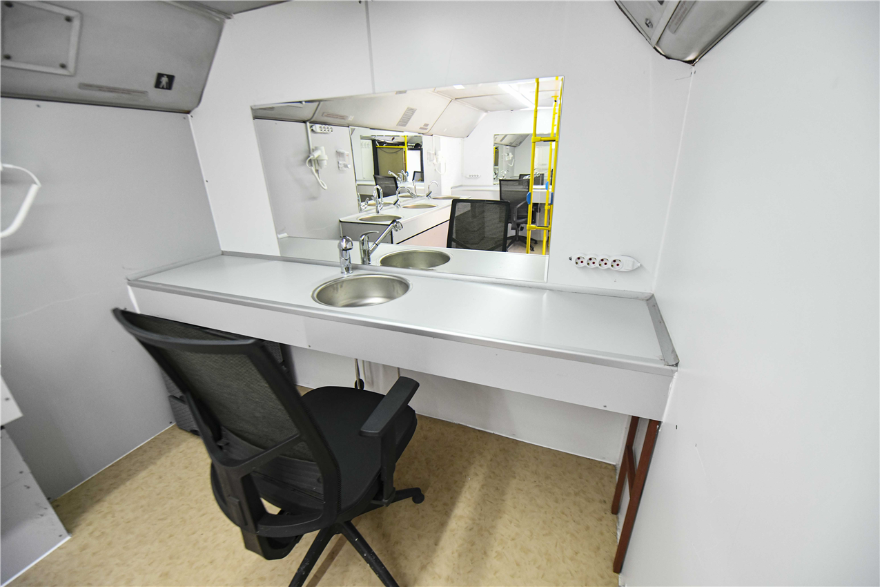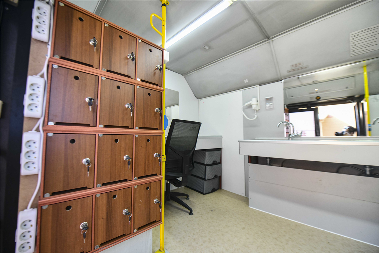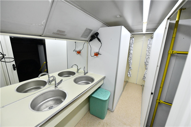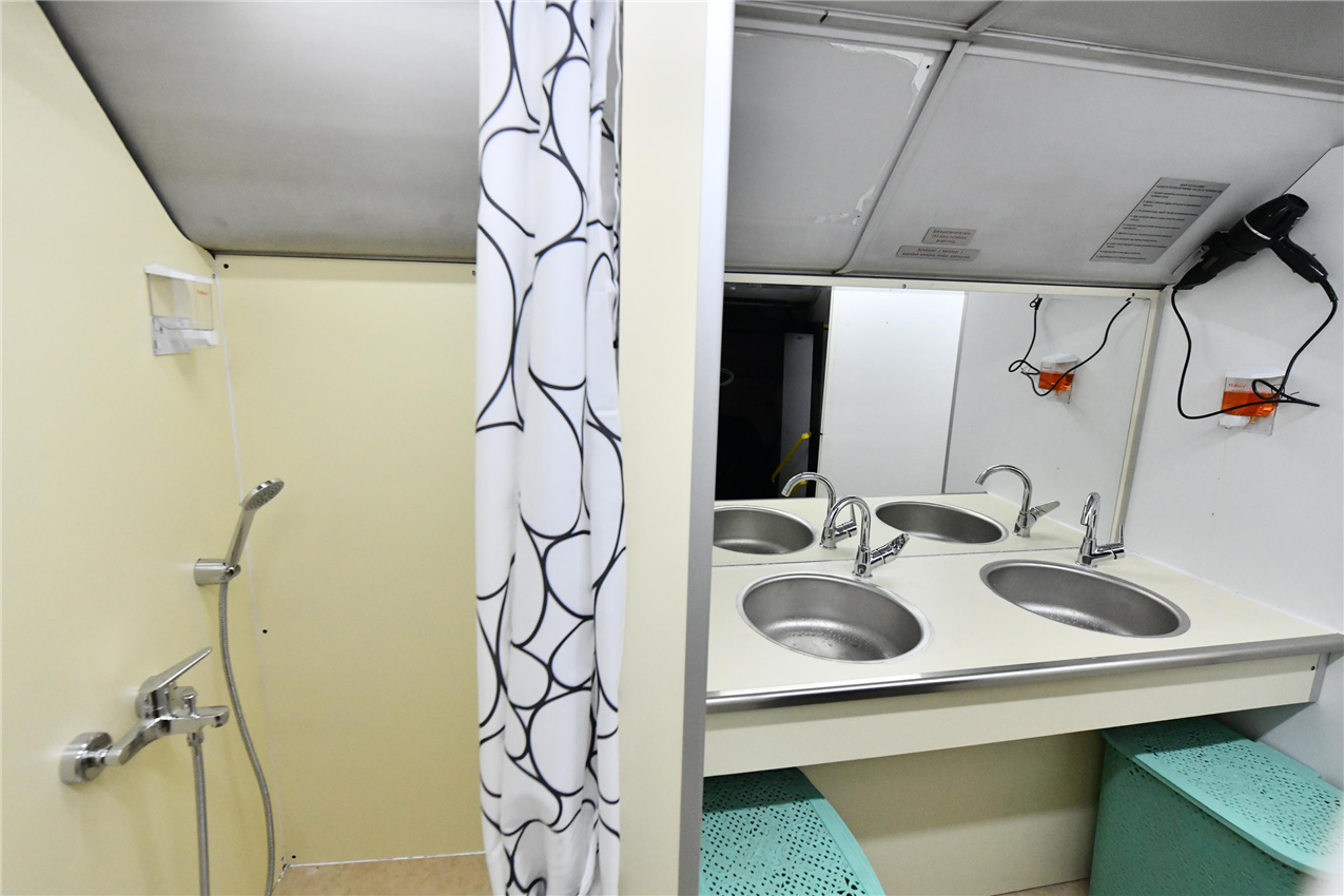 Deprem bölgelerine doğru yola çıkan ve 6 kişinin aynı anda yıkanabildiği mobil duşların içerisinde lavabo, şampuan, sabun, saç kurutma makinesi ve havlu da yer alıyor.